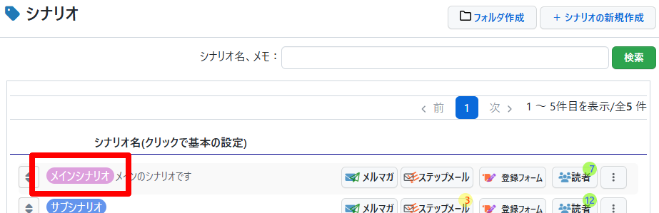 シナリオごとに表示名変更する場合は、ここで設定してください。