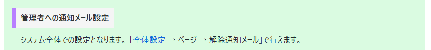 解除完了時の管理者への通知メールは、システム全体での設定となります。→ 全体設定 – 解除通知メール