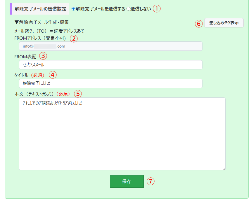 「解除完了メール」とは、読者が登録解除した直後に読者に送信するメールのことです。