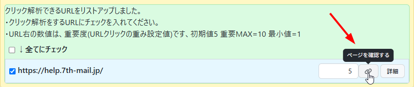 すると、クリック解析できるURLが表示されますので、設定を行いたいURLにチェックを入れて下さい。