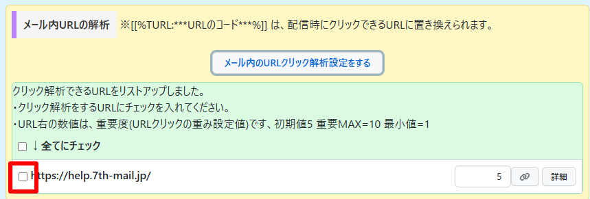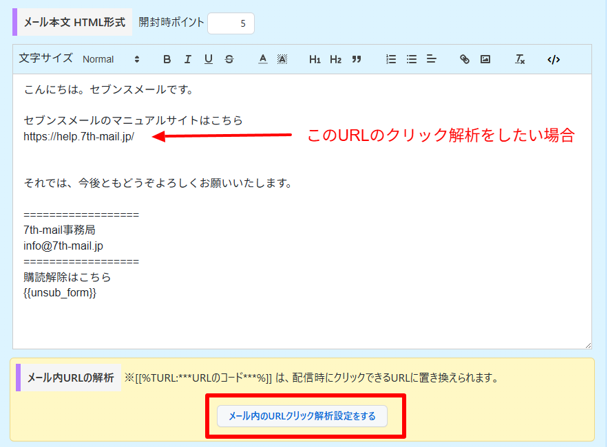この機能を使うには、まず「メール内のURLクリック解析設定をする」をクリックします。