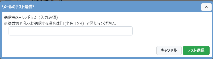 「テスト送信」ボタンをクリックするとこのような画面が表示されますので、送信先のメールアドレスを入力して送信し、届いたメールを確認してください。