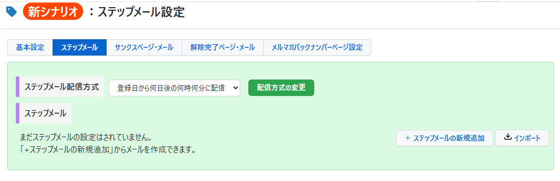 ステップメール配信方式の設定で設定した方式が表示されます。